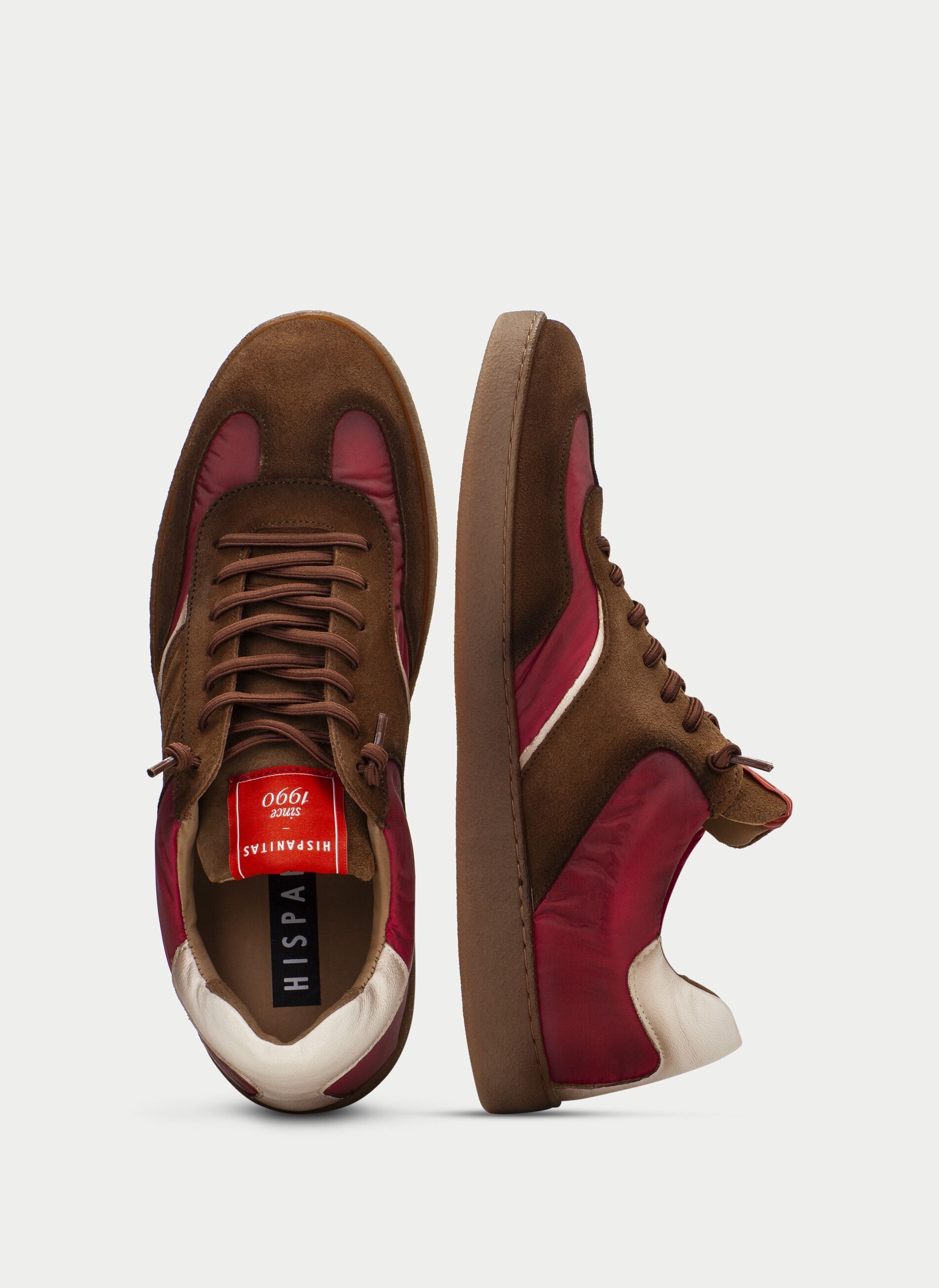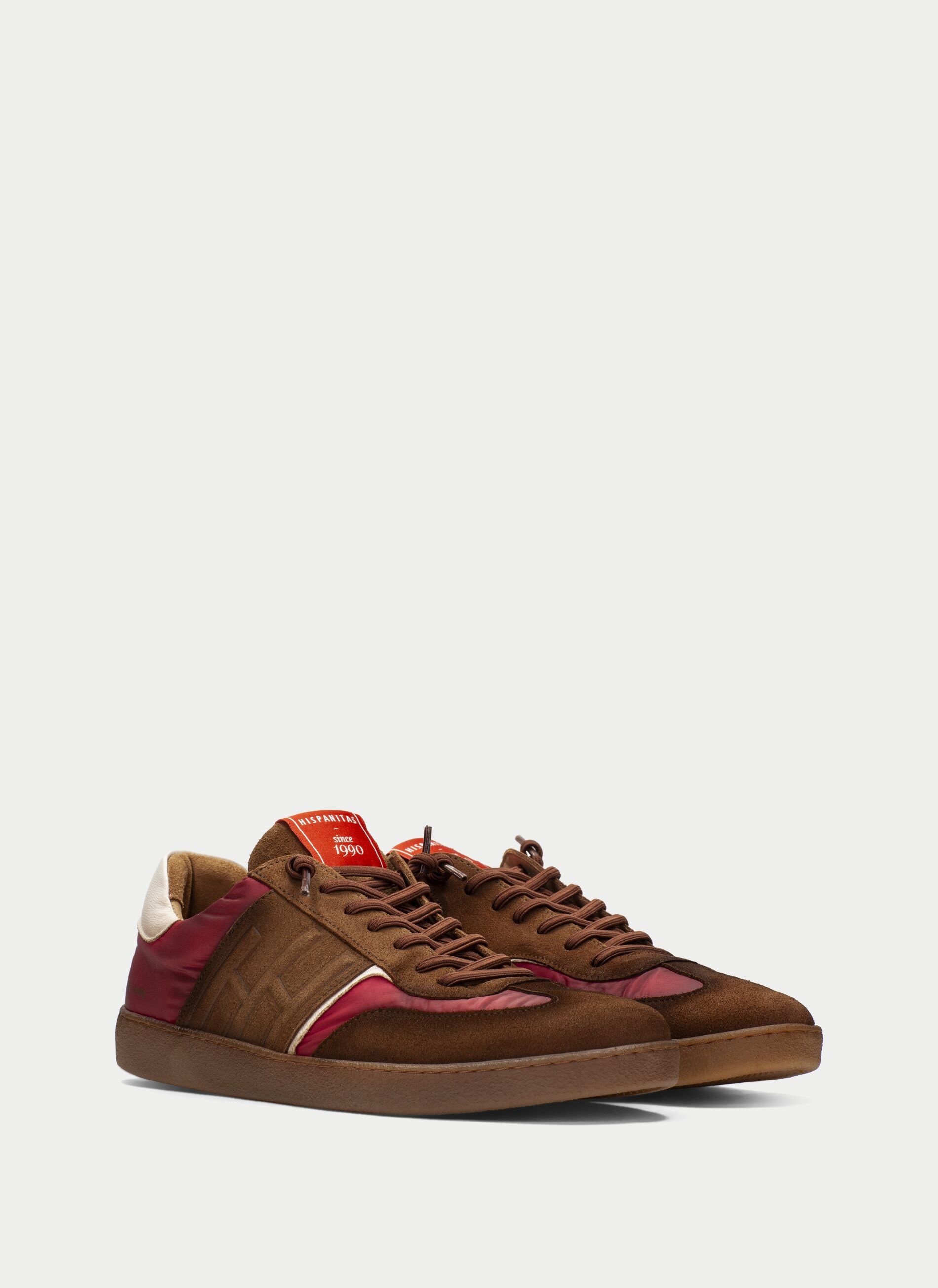 Dieser Sneaker besteht aus samtigem Veloursleder und technischem Nylon, die zusammen mit der rutschfesten Gummisohle in Karamellfarbe eine sportliche, aber dennoch raffinierte Ästhetik verleihen.