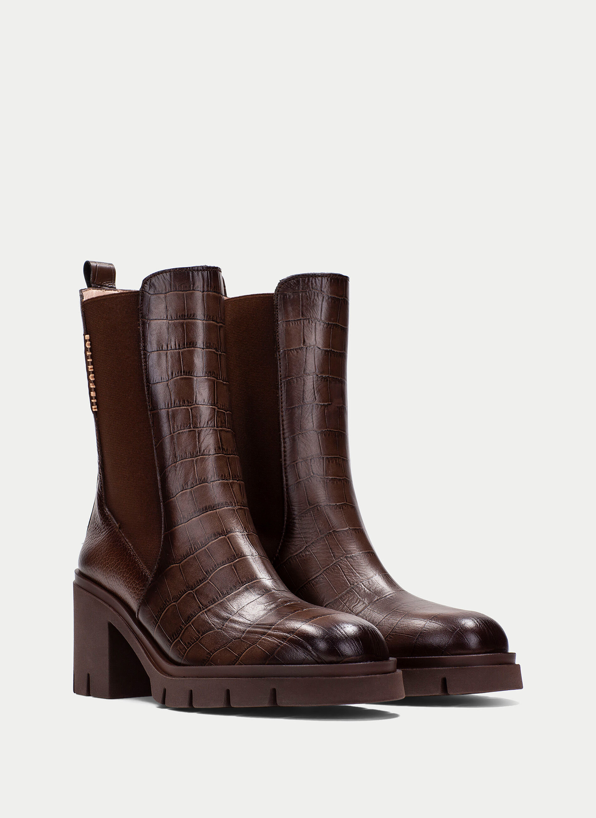 En cuir de vachette avec gaufrage effet crocodile.