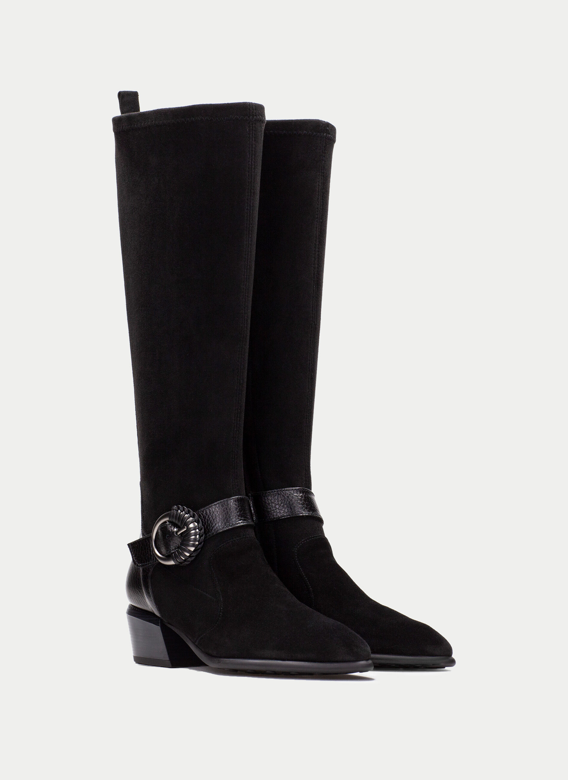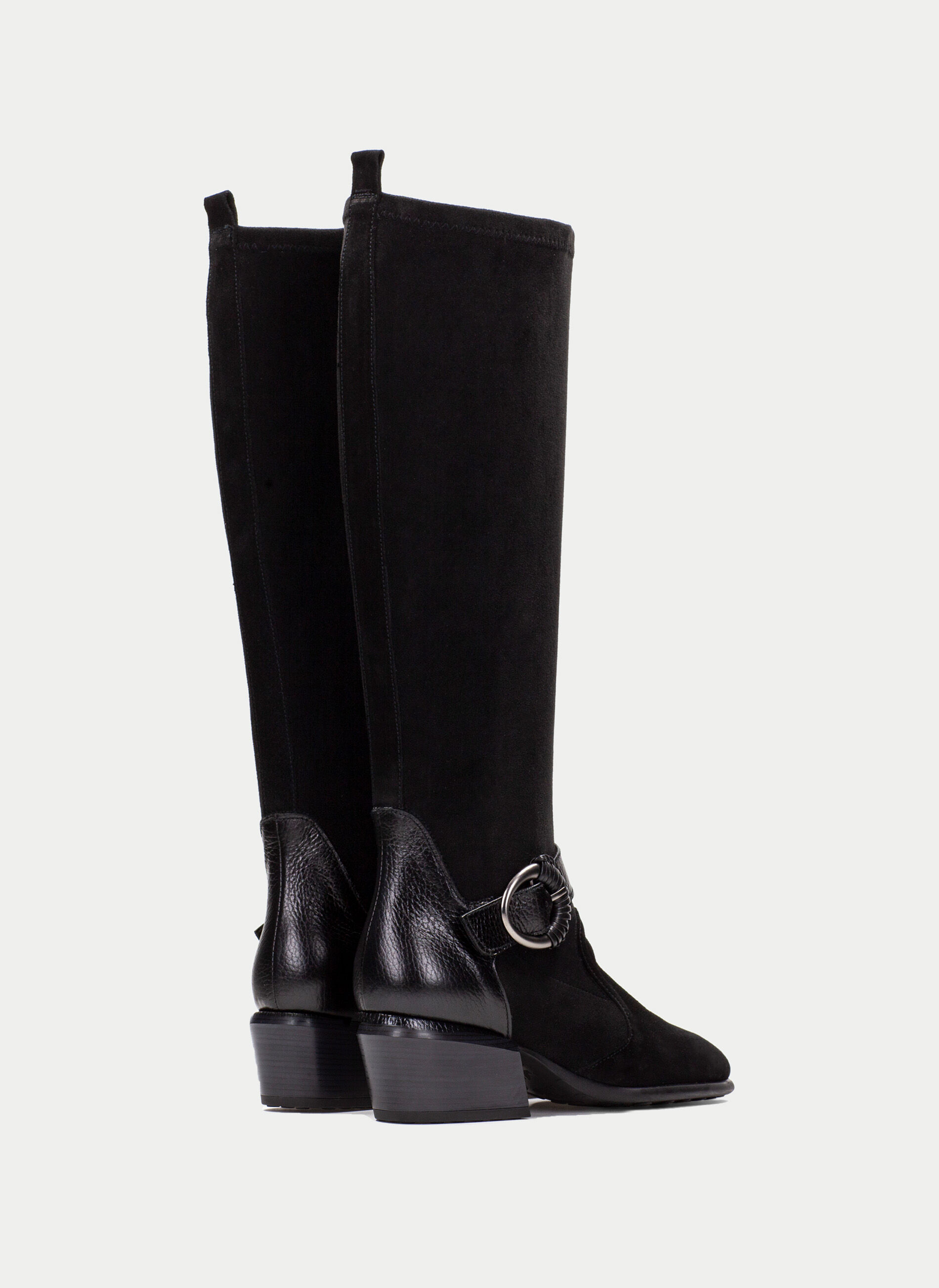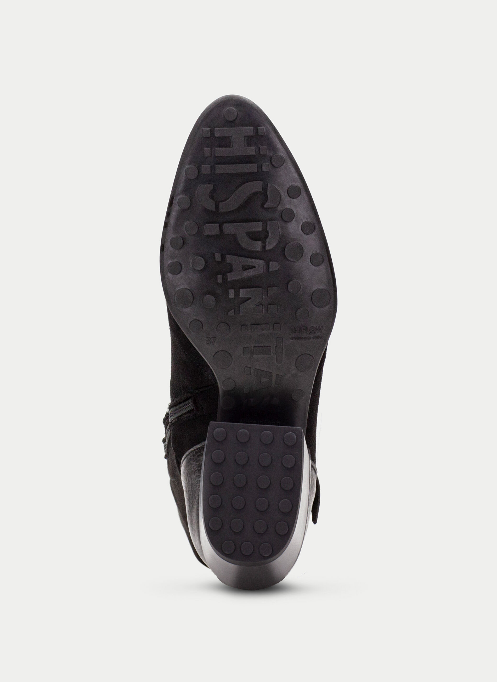 Suola effetto gomma con design a carrarmato e tacco cubano di 5 cm con finitura legno.