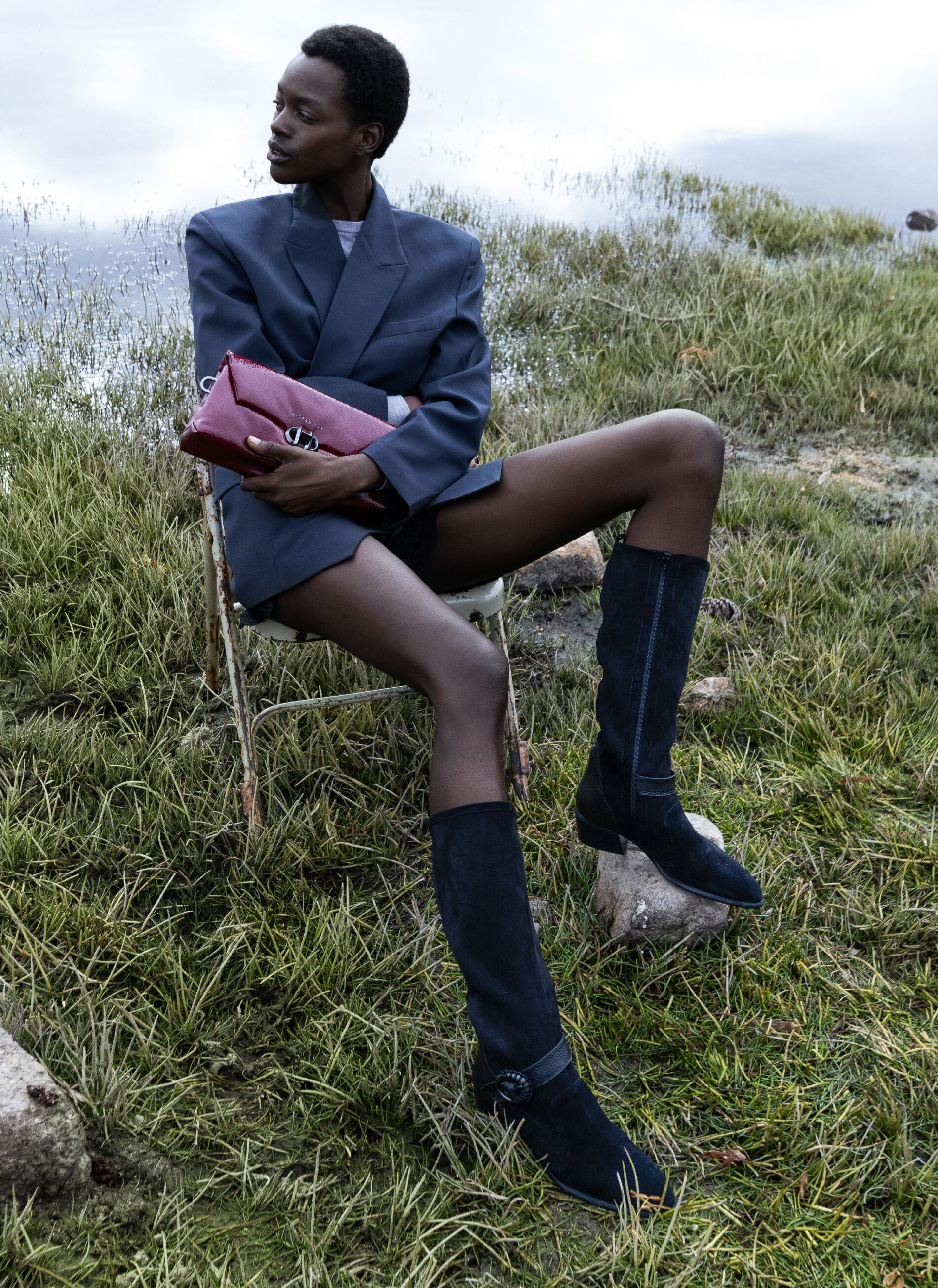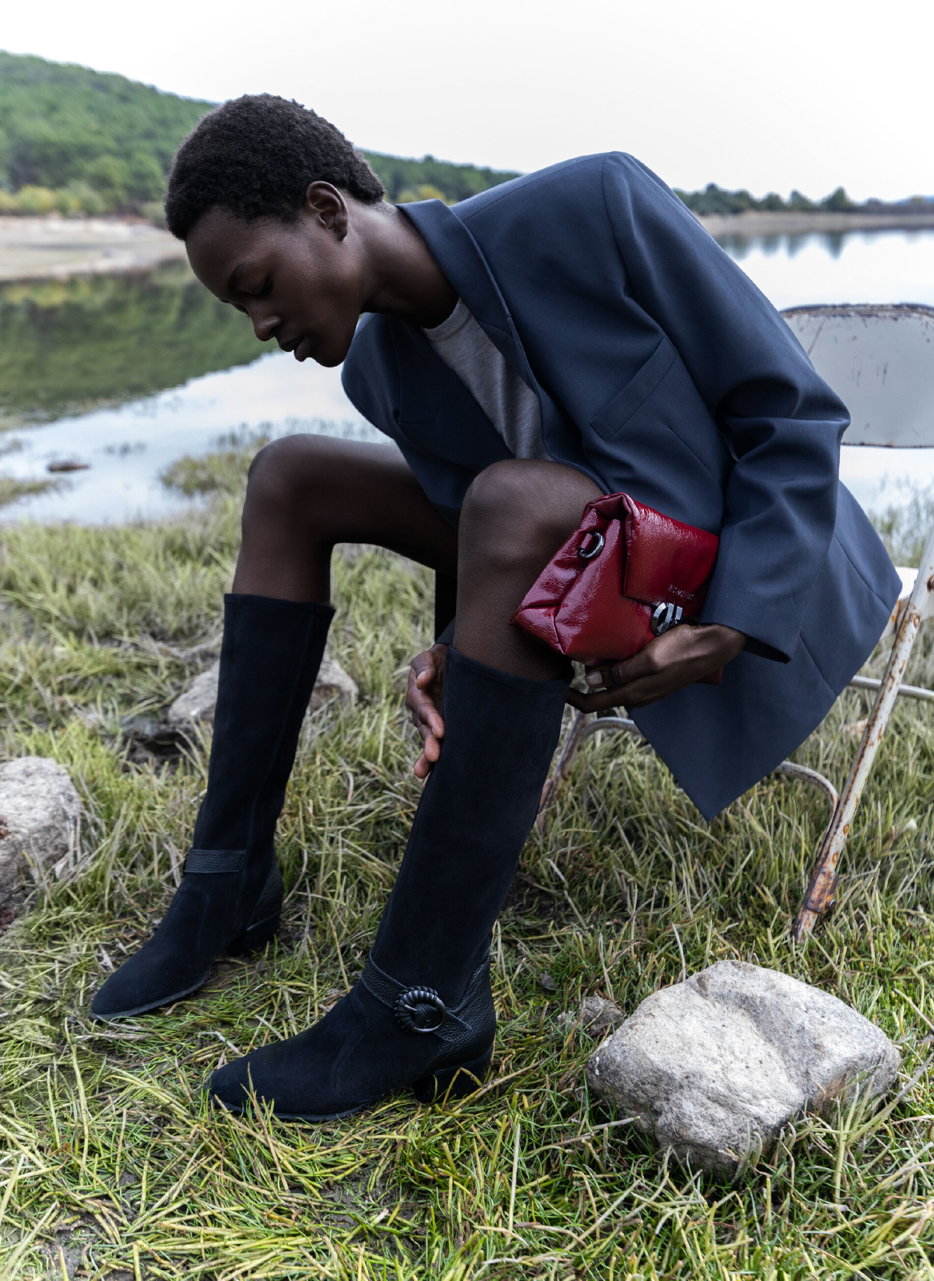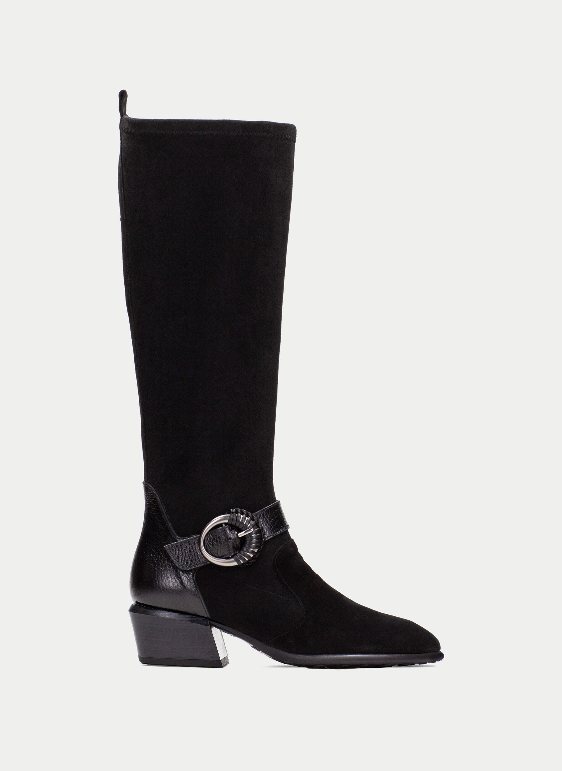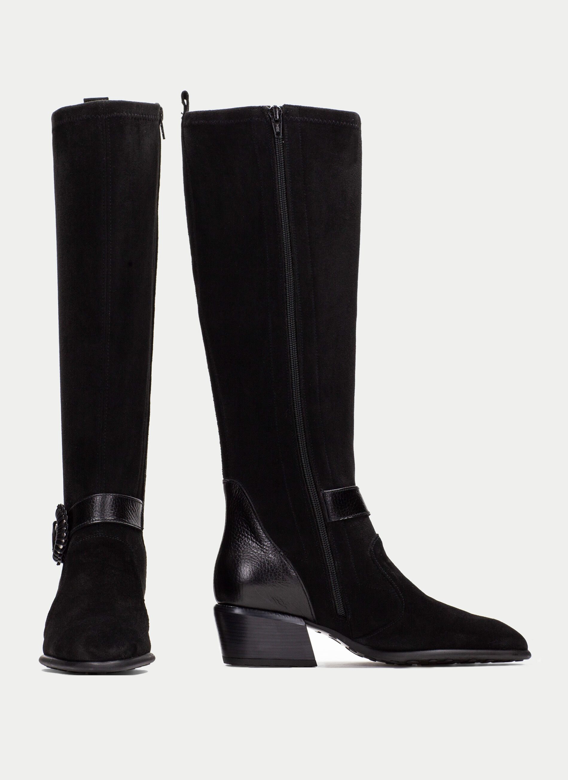 Suola effetto gomma con design a carrarmato e tacco cubano di 5 cm con finitura legno.